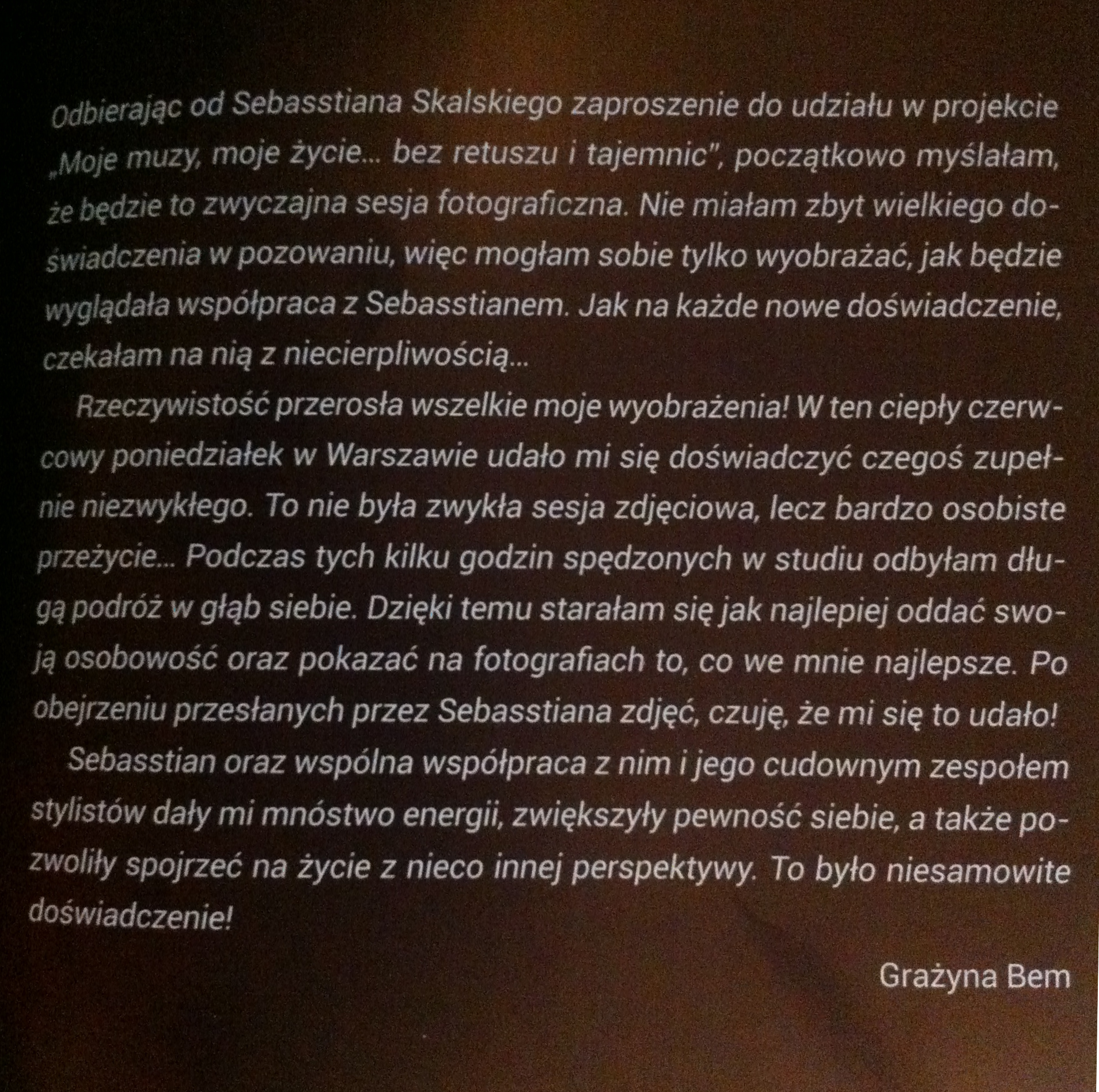 Sebastian Skalski "Moje Muzy Moje Życie Bez Retuszu i Tajemnic" View the embedded image gallery online at: https://www.old.grazynabem.pl/pages/media-o-nas/moje-muzy-moje-zycie.html#sigProIdee3da2bf29
